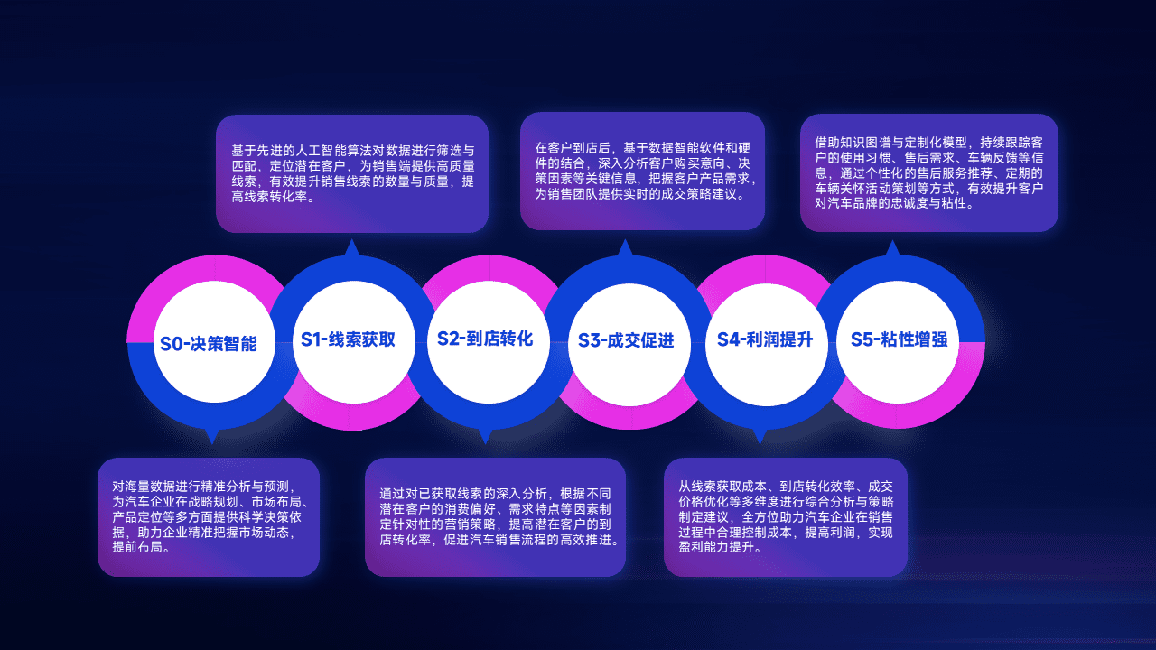 通过拓宽潜在客户来源、、优化线索分配并提高到店转化率,,,,以增强销售效率。。同时,,利用线索数据不断优化分析模型,,,有效提升转化率,,,,扩大营销影响力。。